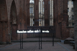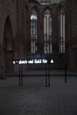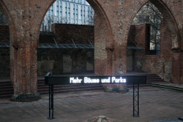 Neben der Präsentation der künstlerischen Auseinandersetzungen mit den verschiedenen Orten war die Ausstellung in der Alten Münze auch Ausgangspunkt für eine Diskussion über die Visionen der Jugendlichen. Im Rahmen verschiedener Gesprächsrunden zwischen Schüler*innen und Expert*innen haben die Schüler*innen die “Erklärung der urbanen Rechte junger Menschen” geschrieben. Sie fasst ihre Erwartungen, Wünsche und Bedürfnisse an den öffentlichen Raum zusammen und wurde als LED Text in der Franziskaner Klosterruine veröffentlicht.