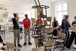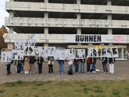 Schwerpunkt der diesjährigen Edition Er(be)lebens war das Bauhaus, das dieses Jahr Jubiläum feierte. Das auf den urbanen Raum interpretierte Konzept demokratischen Charakters des Bauhauses motivierte dazu, den Stadtraum neu zu entdecken. Auf den Spuren der Historie und Perspektive(n) untersuchten die Schüler*innen gemeinsam mit den beteiligten Künstler*innen während regelmäßiger Gruppen-Workshops jeweils drei Orte in Berlin Mitte: das Haus der Statistik, das Alexa am Alexanderplatz und den Holzmarkt am Spreeufer. Diese drei Orte verkörpern verschiedene Abläufe der Stadtentwicklung und hinterfragen, inwiefern die Planungsprozesse demokratisch ablaufen. Dabei haben sich die Jugendlichen den Raum genommen, sich selbst mit in das Geschehen des Ortes einzubringen. Neben der Bedeutung, die diese Orte in ihrem alltäglichen Leben haben, haben sie auch die Nachvollziehbarkeit der Stadtentwicklung thematisiert, um anschließend zu reflektieren, wie sie als junge Erbeträger*innen aktiv an ihr mitwirken können.